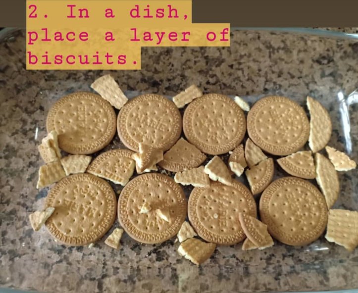 2. In a dish, place a layer of biscuits.