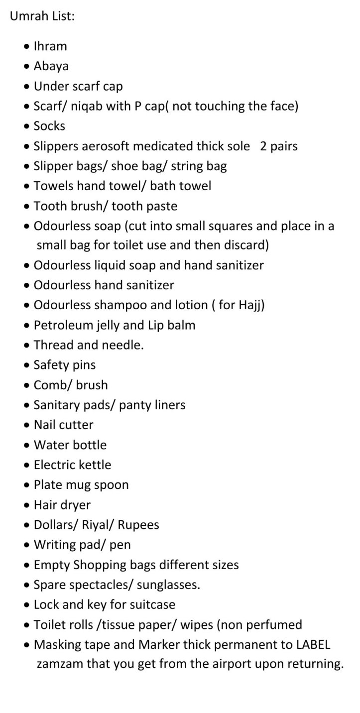 *Don’t forget to see the check list and Umrah at a glance leaflet at the end of the post*